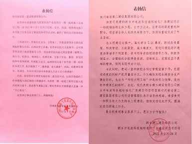112022.02新乡建工建设有限公司和河南新飞智家科技有限公司向九游·官方端web站入口-JiuYou j9(中国)发来表扬信 -
